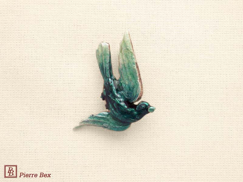 ![]() Art-Deco large enameled brooch bird 48566-08USD 35.00![]() Made by Pierre-Bex from enameled silverplated copper, this brooch is 6 cm ( 2-½ inches ) width. USD 35.00 |