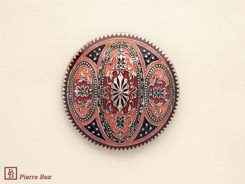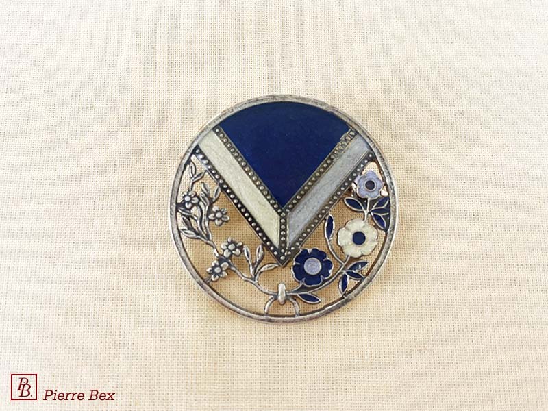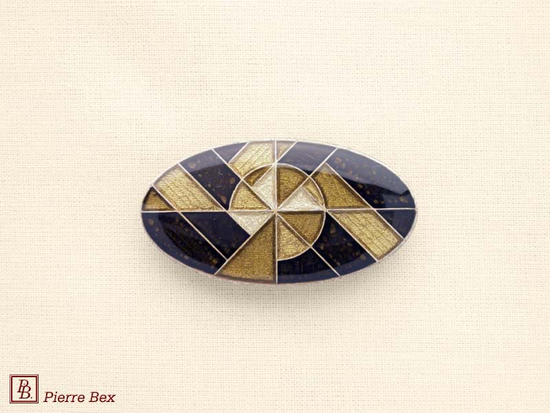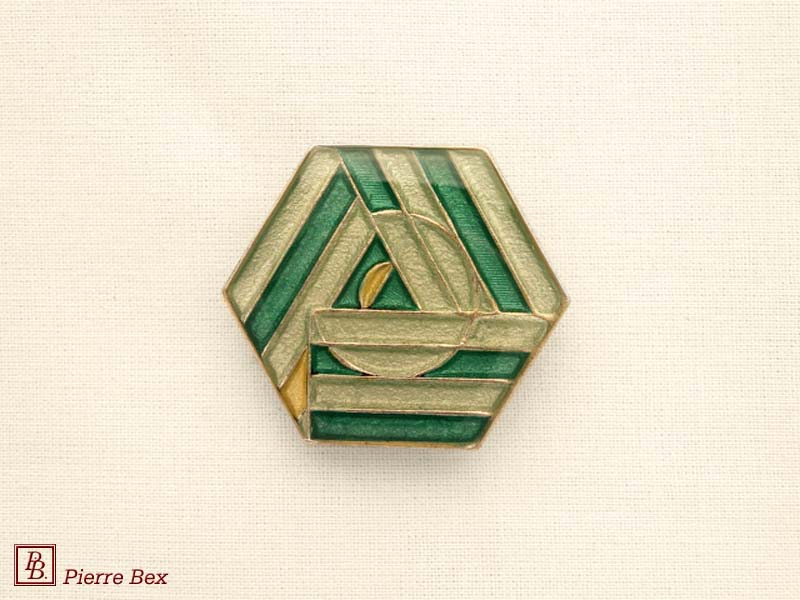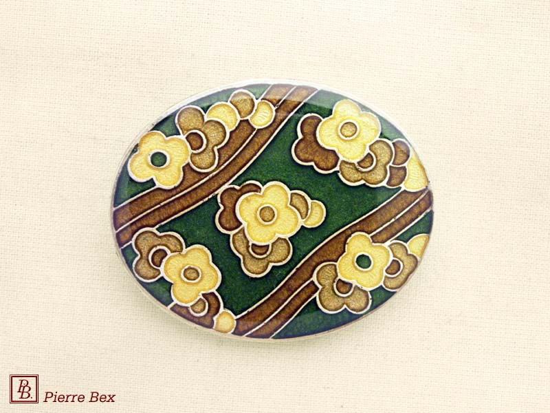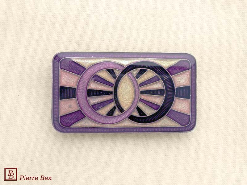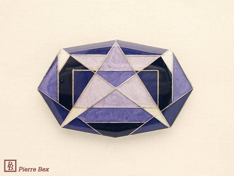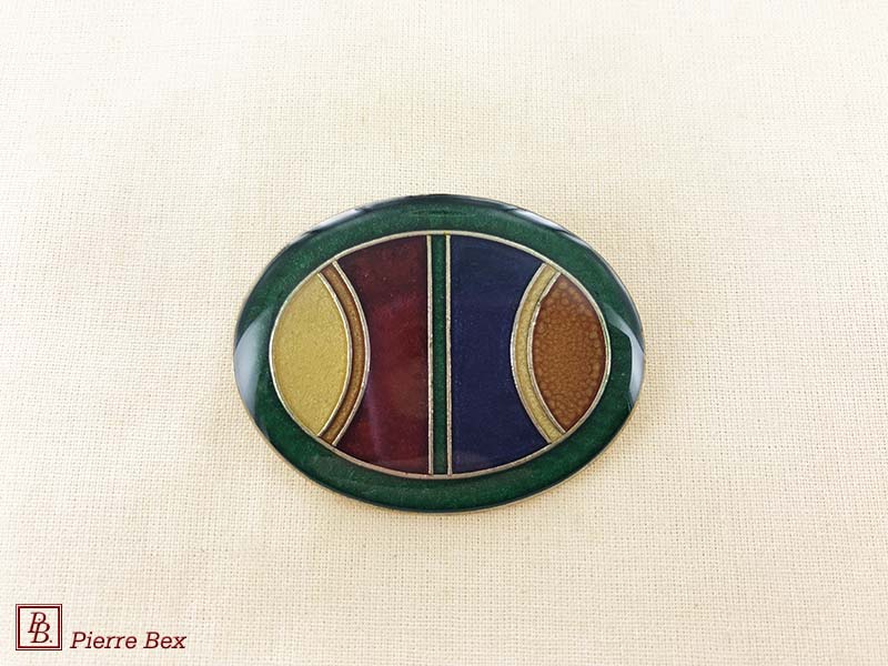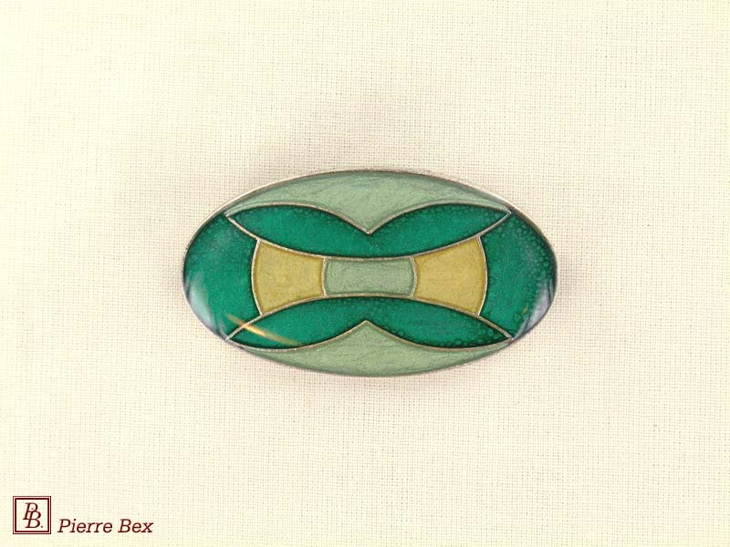 ![]() Art-Deco enameled brooch 48536-19Sold OutMade by Pierre-Bex from enameled silverplated copper, this brooch is 4 cm ( 1-½ inch ) width. Sold Out |