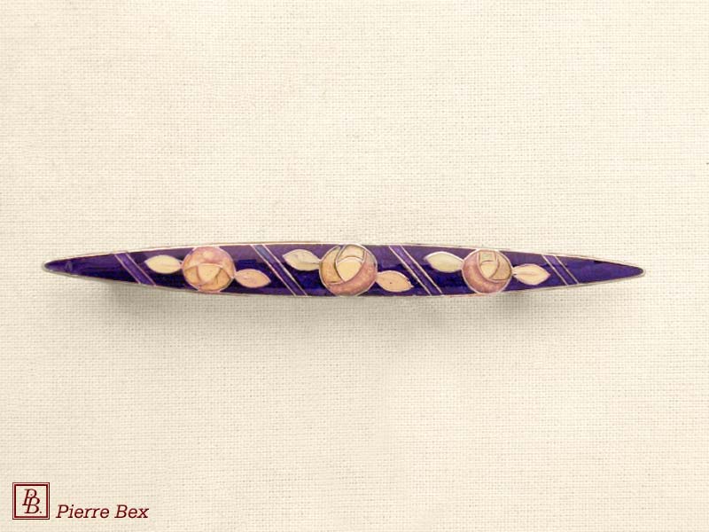 ![]() Art-Deco large enameled brooch clove 48566-09Sold OutMade by Pierre-Bex from enameled silverplated copper, this brooch is 7.5 cm ( 3 inches ) width. Sold Out |
