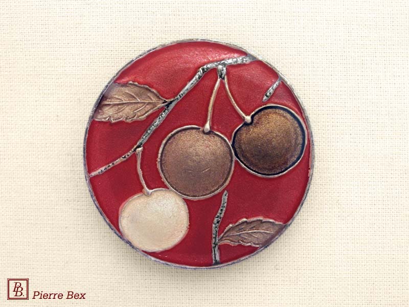 ![]() Art-Deco enameled brooch cherries 48546-04USD 30.00![]() Made by Pierre-Bex from enameled silverplated copper, this brooch is 3.5 cm ( 1-½ inch ) width. USD 30.00 |
