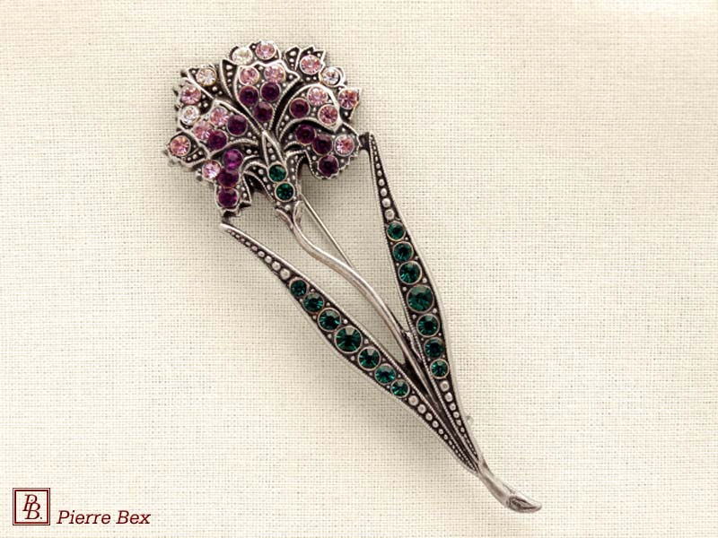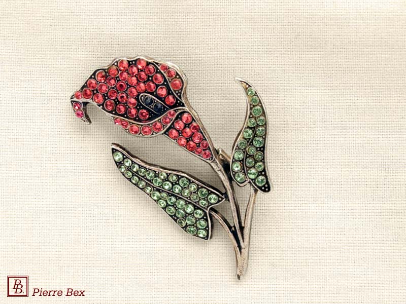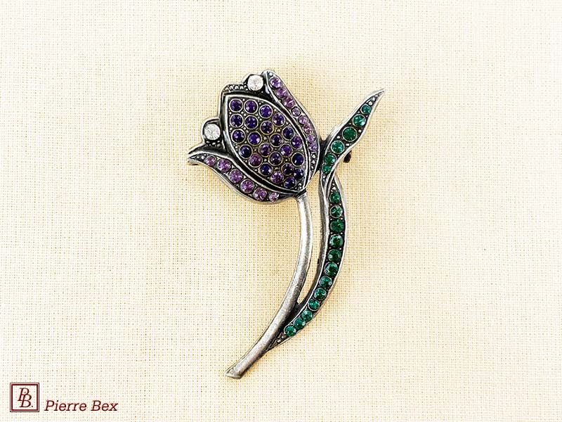 ![]() Art-Deco large brooch tulip 45656-02USD 40.00![]() Made by Pierre-Bex from silverplated copper and color rhinestones, this brooch is 6 cm ( 2-½ inches ) width. USD 40.00 |