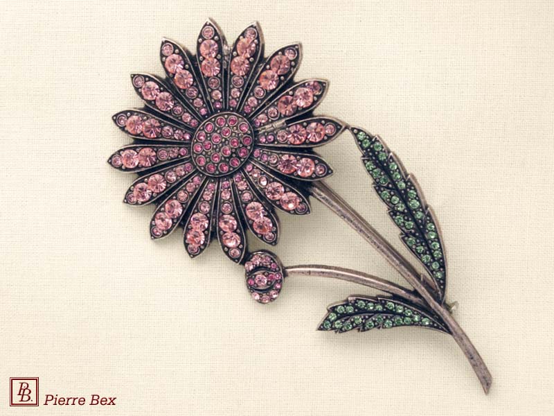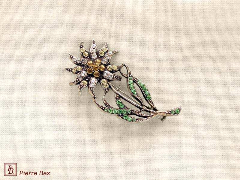 ![]() Art-Deco brooch flower 45336-52Sold OutMade by Pierre-Bex from silverplated copper and crystal rhinestones, this brooch is 4 cm ( 1-½ inch ) width. Sold Out |
