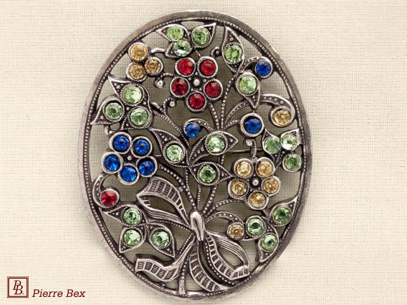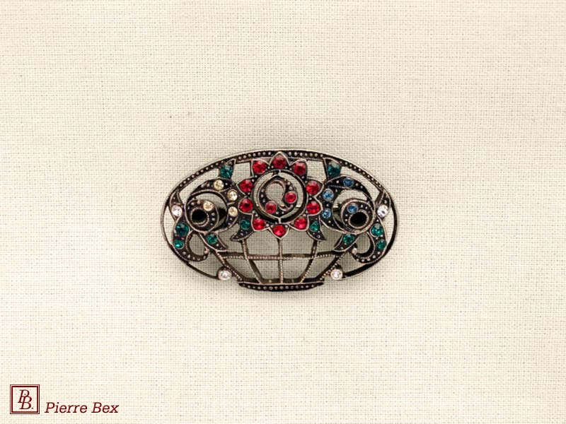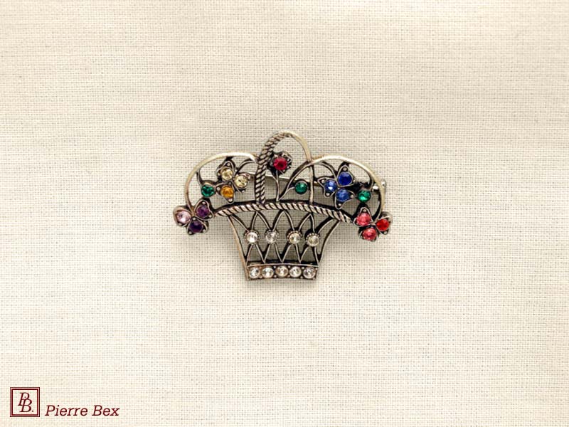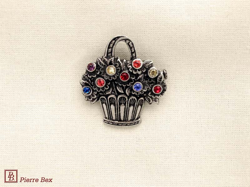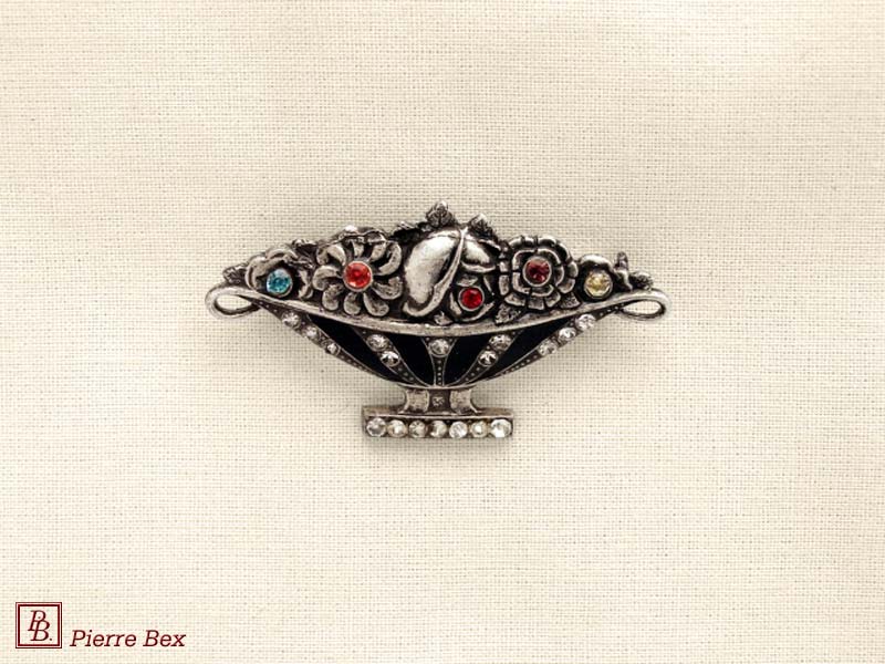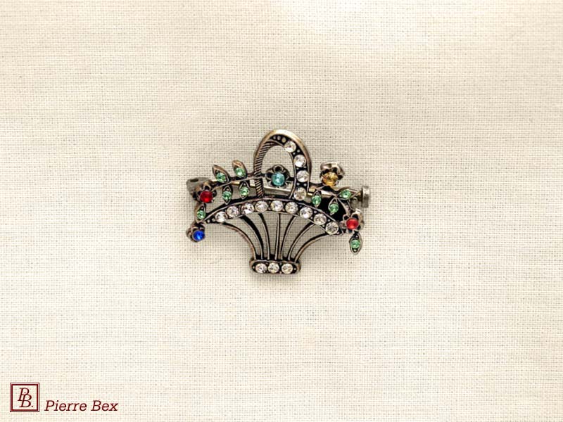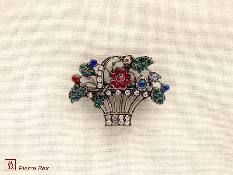 ![]() Art-Deco brooch basket of flowers 45636-11Sold OutMade by Pierre-Bex from silverplated copper and color rhinestones, this brooch is 3.5 cm ( 1-½ inch ) width. Sold Out |