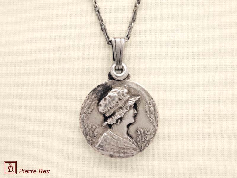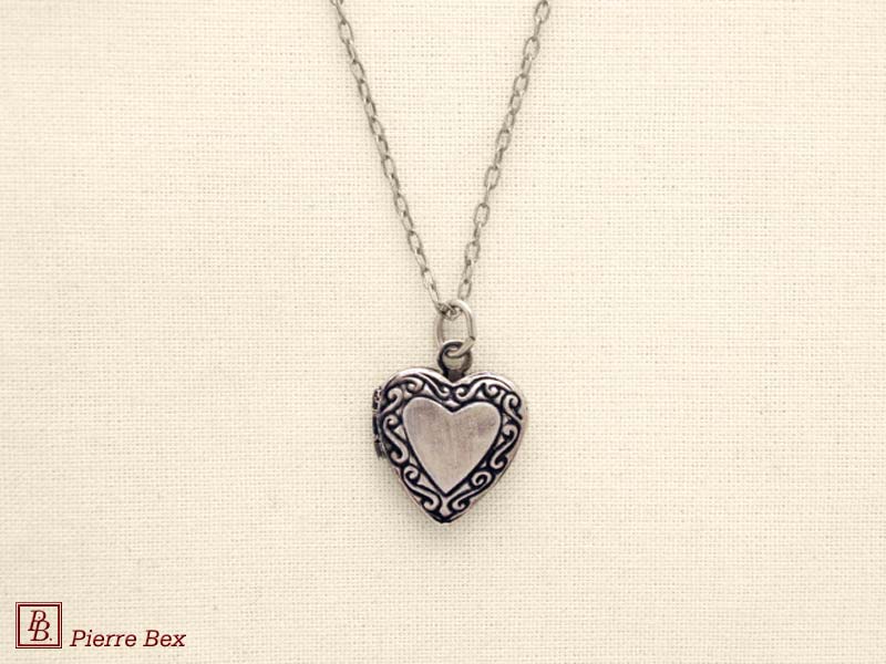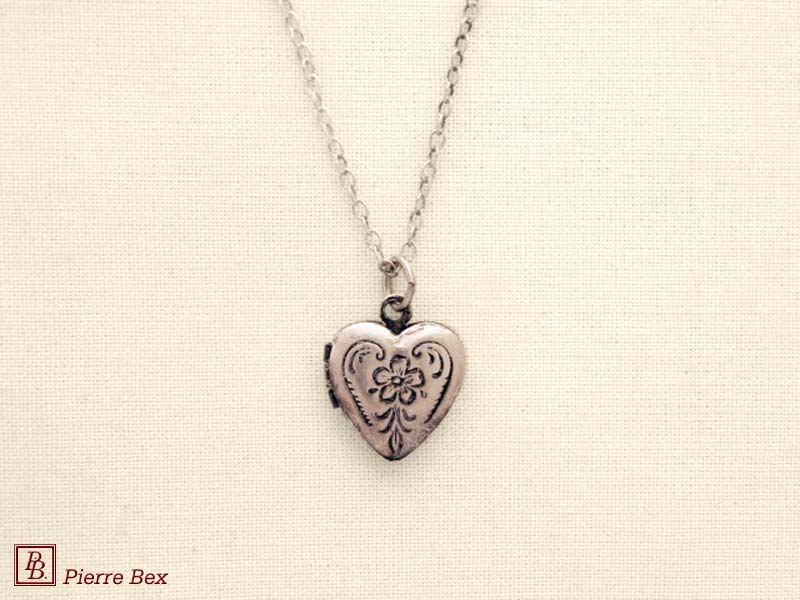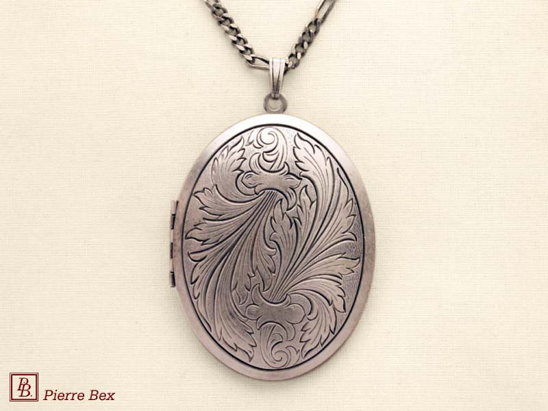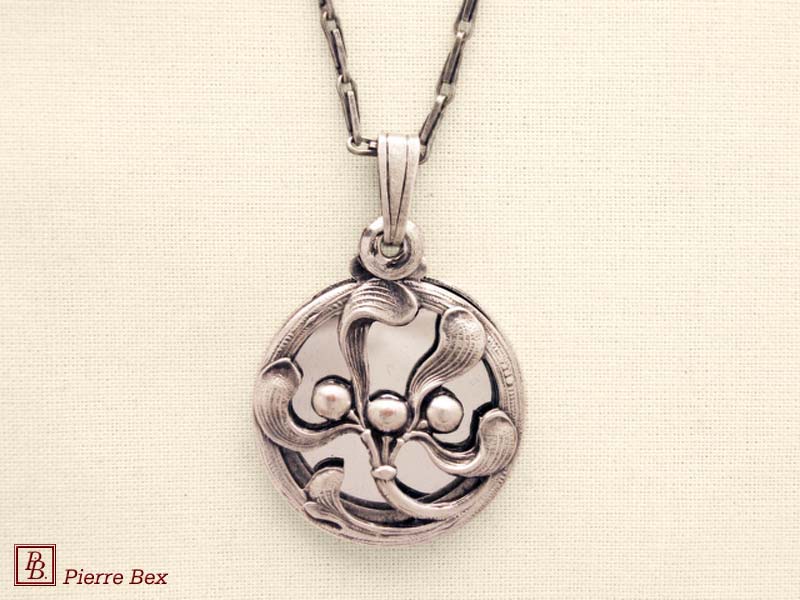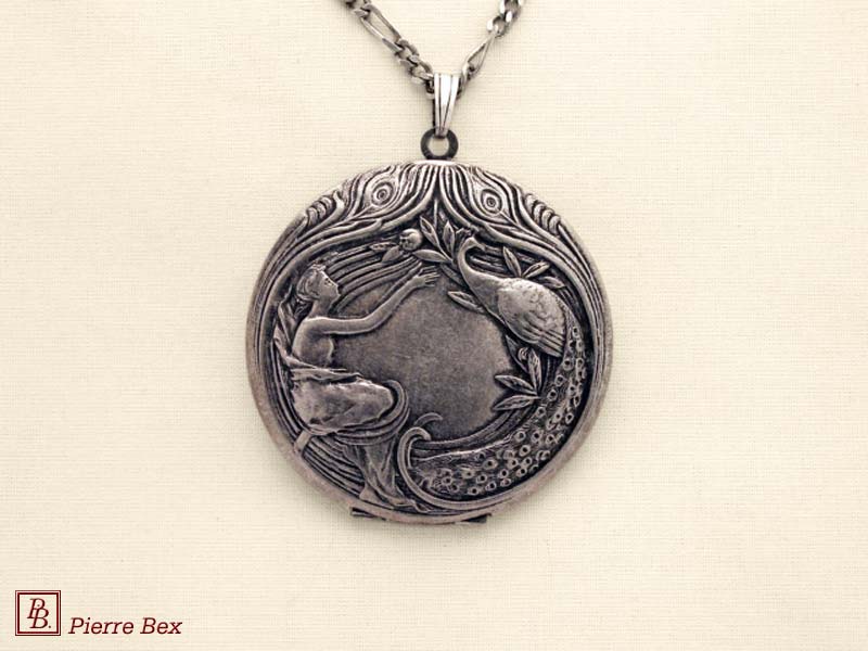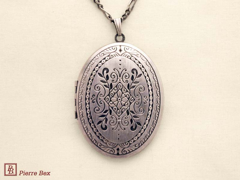 Sold OutMade by Pierre-Bex from silverplated copper, this locket is 5 cm ( 2 inches ) height. You may open it to place a picture or a piece of hair. the length of the chain is 70 cm ( 27 inches ). Sold Out |