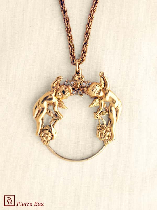 Art-Deco magnifying glass necklace cherub 44593-D1