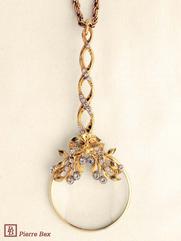 Made by Pierre-Bex from goldplated copper with rhinestones, this magnifying glass is 6 cm ( 2-½ inches ) height.