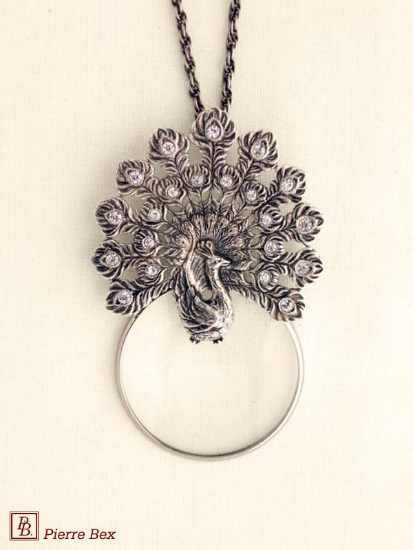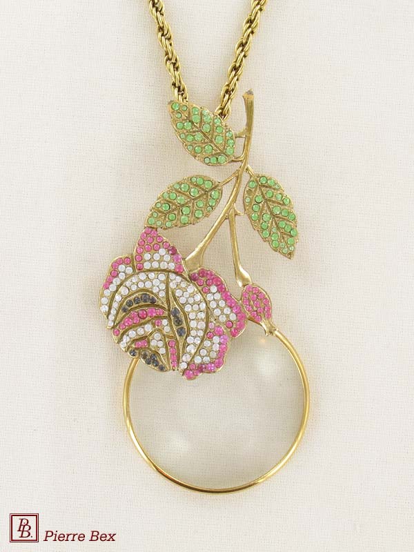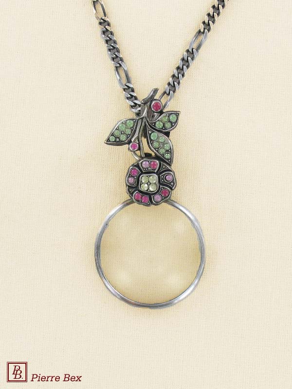 Made by Pierre-Bex from silverplated copper, rhinestones and enamel, this magnifying glass is 11 cm ( 4 inches ) height.