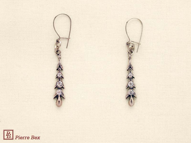 ![]() Art-Deco earrings with rhinestones 45215-18USD 15.00![]() Made by Pierre-Bex from silverplated copper with rhinestones. the length of these mini earrings is 2.5 cm ( 1 inch ). USD 15.00 |