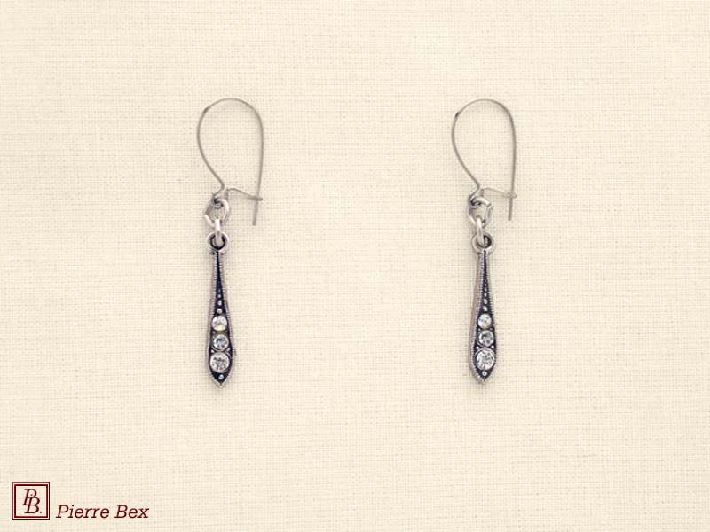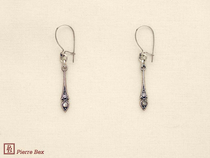 ![]() Art-Deco earrings with rhinestones 45215-11USD 15.00![]() Made by Pierre-Bex from silverplated copper with rhinestones. the length of these mini earrings is 2.5 cm ( 1 inch ). USD 15.00 |