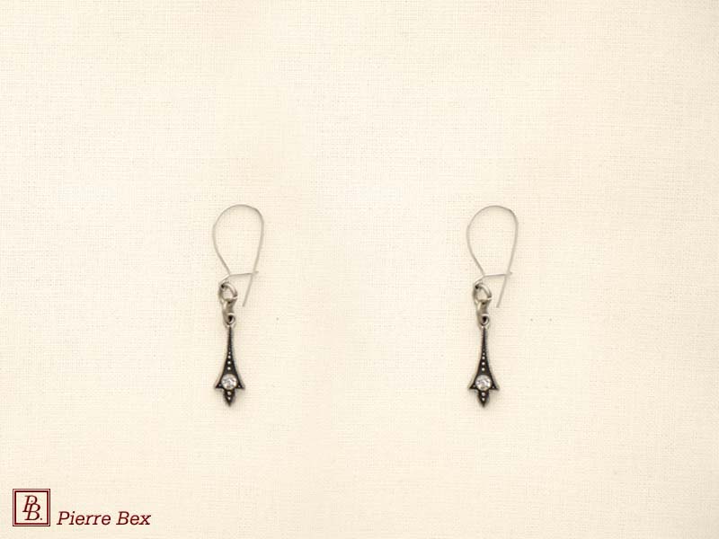 ![]() Art-Deco earrings with rhinestones 45215-08USD 15.00![]() Made by Pierre-Bex from silverplated copper with rhinestones. the length of these mini earrings is 2.5 cm ( 1 inch ). USD 15.00 |