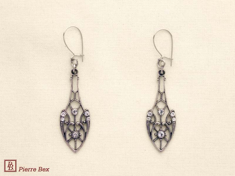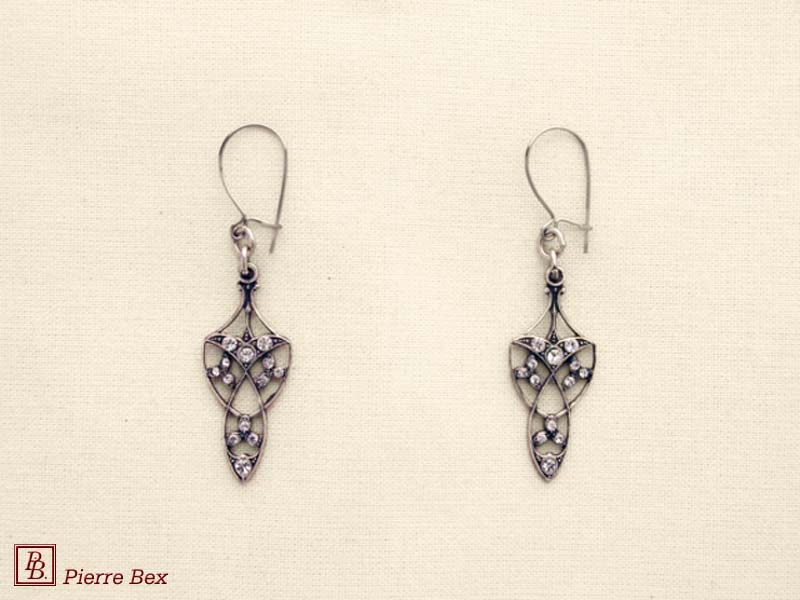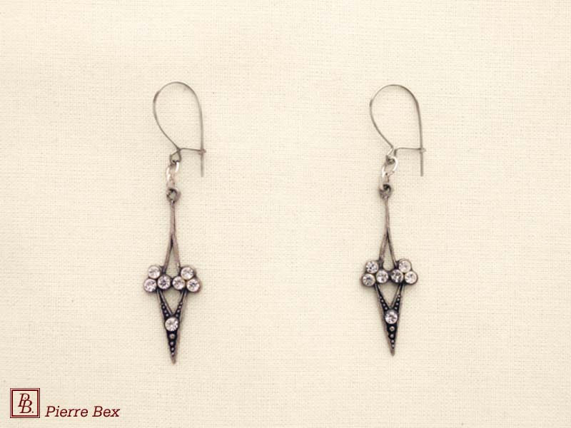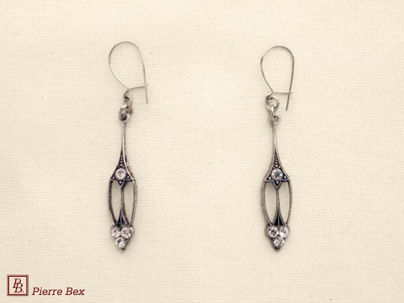 ![]() Art-Deco earrings with rhinestones 45235-27Sold OutMade by Pierre-Bex from silverplated copper with rhinestones. The length of these earrings is 5.5 cm ( 2 inches ). Sold Out |