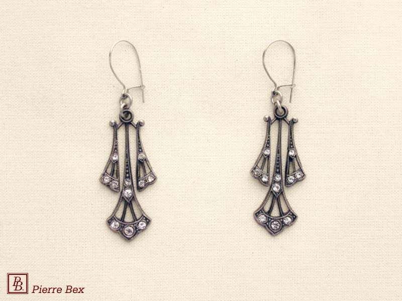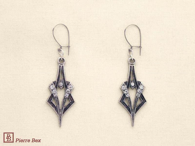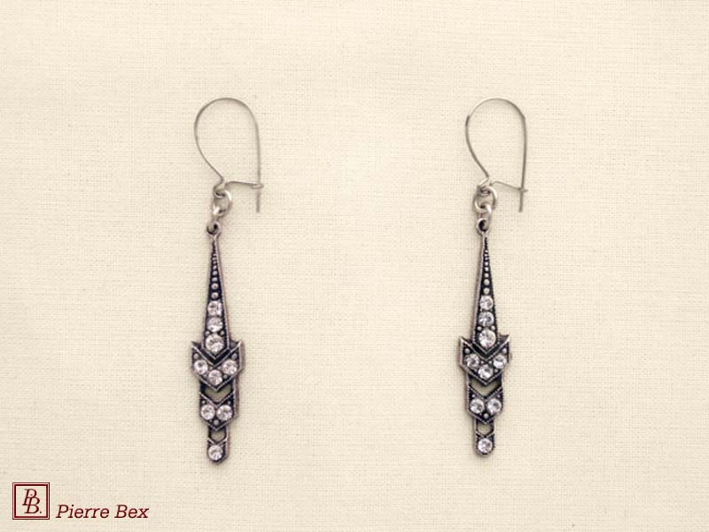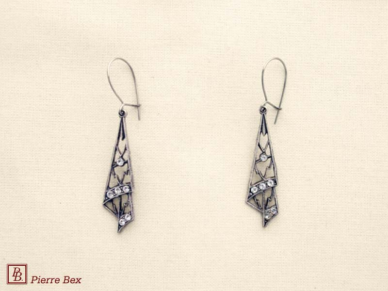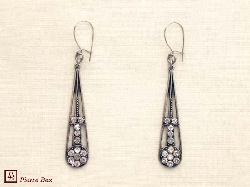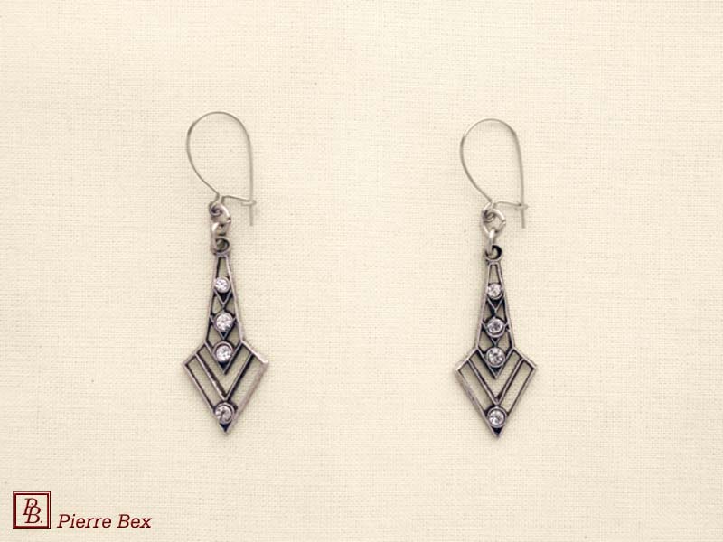 ![]() Art-Deco earrings with rhinestones 45235-20Sold OutMade by Pierre-Bex from silverplated copper with rhinestones. The length of these earrings is 5 cm ( 2 inches ). Sold Out |