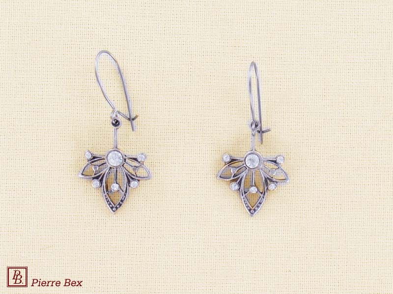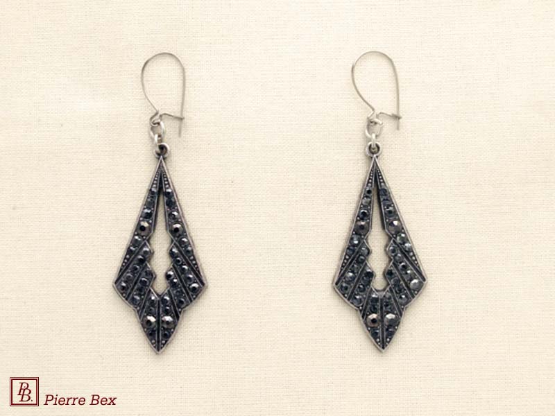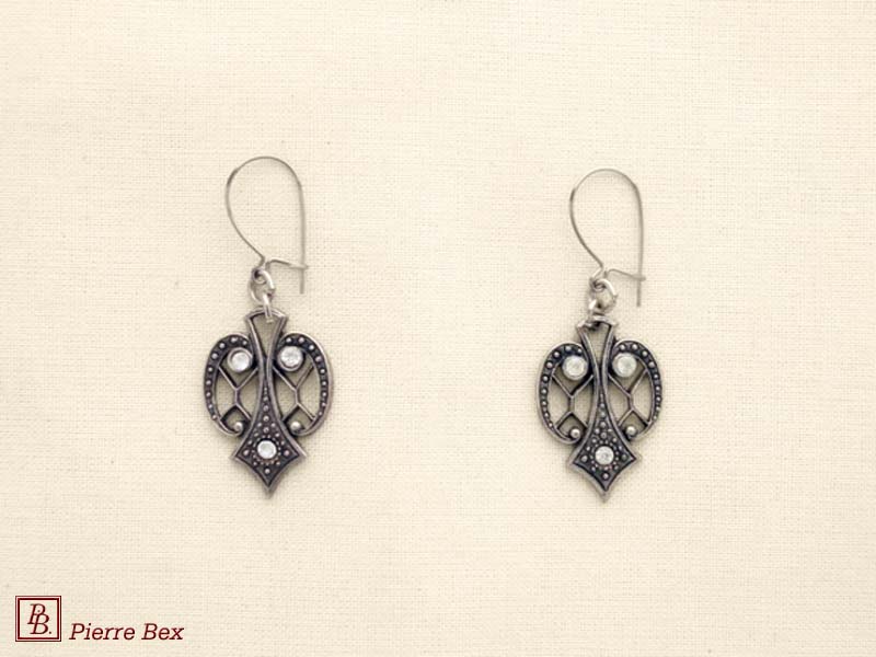 ![]() Art-Deco earrings with rhinestones 45545-01AUSD 30.00![]() Made by Pierre-Bex from silverplated copper and marcasite rhinestones, the length of these earrings is 3.5 cm ( 1-½ inch ). USD 30.00 |