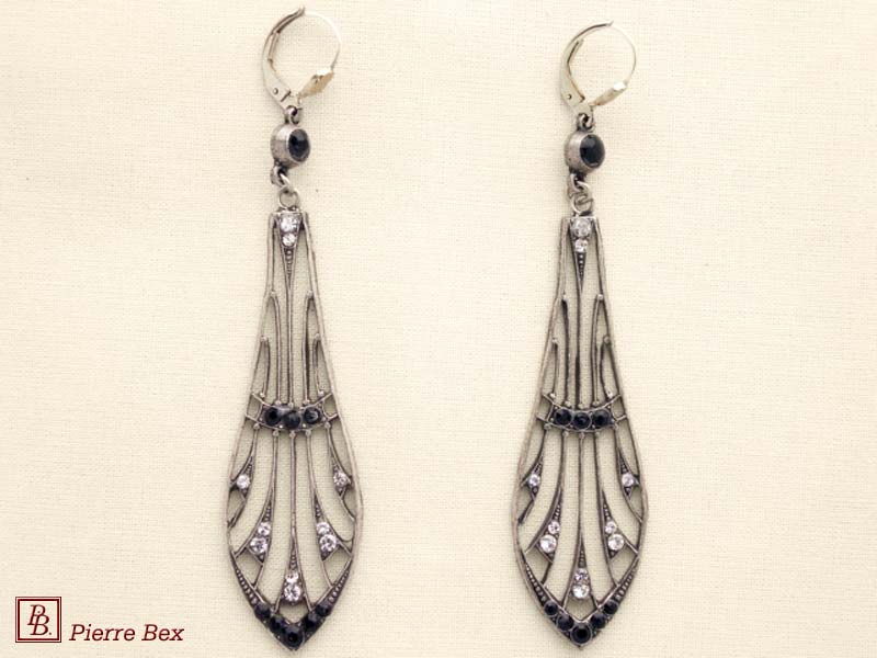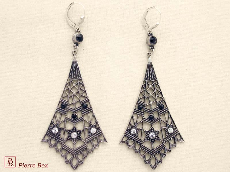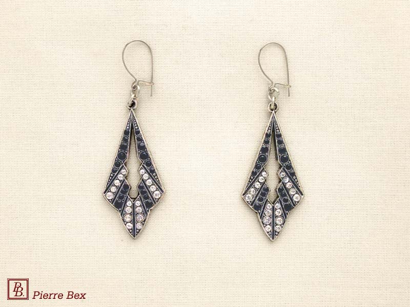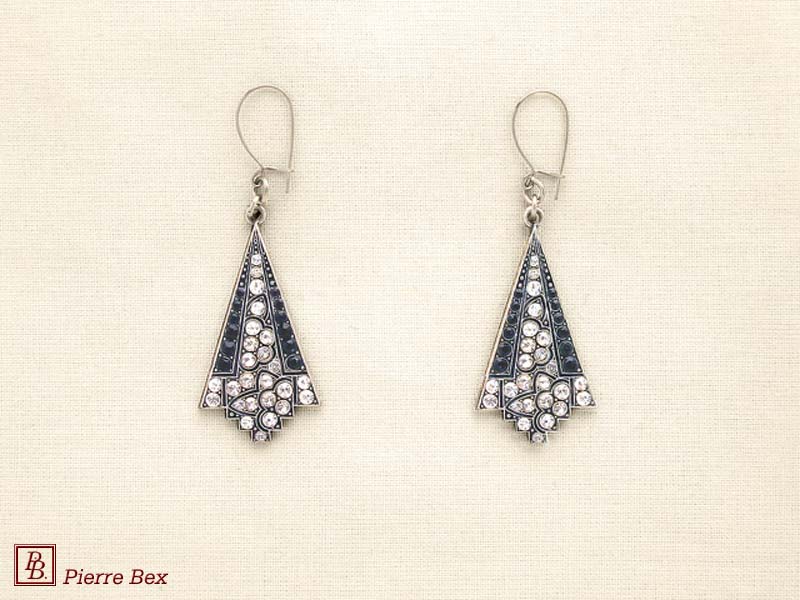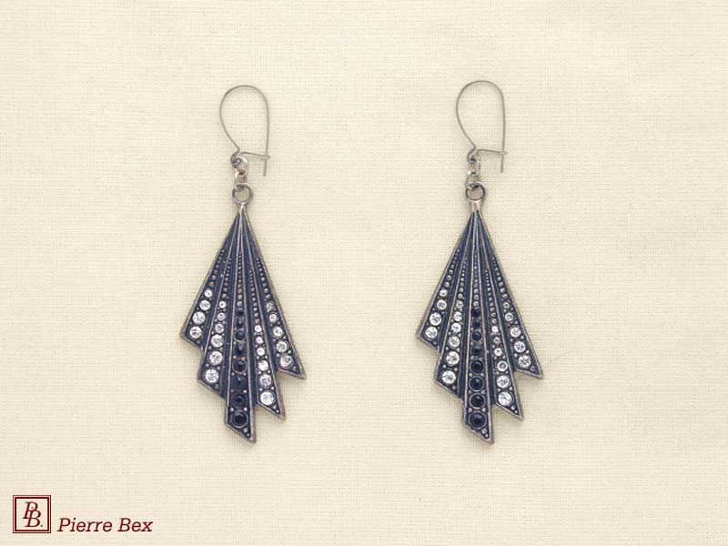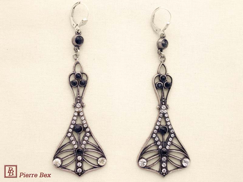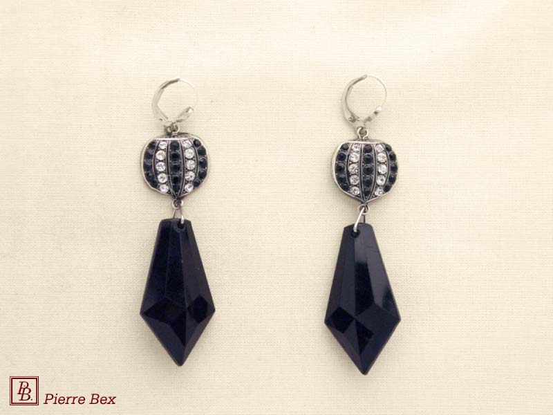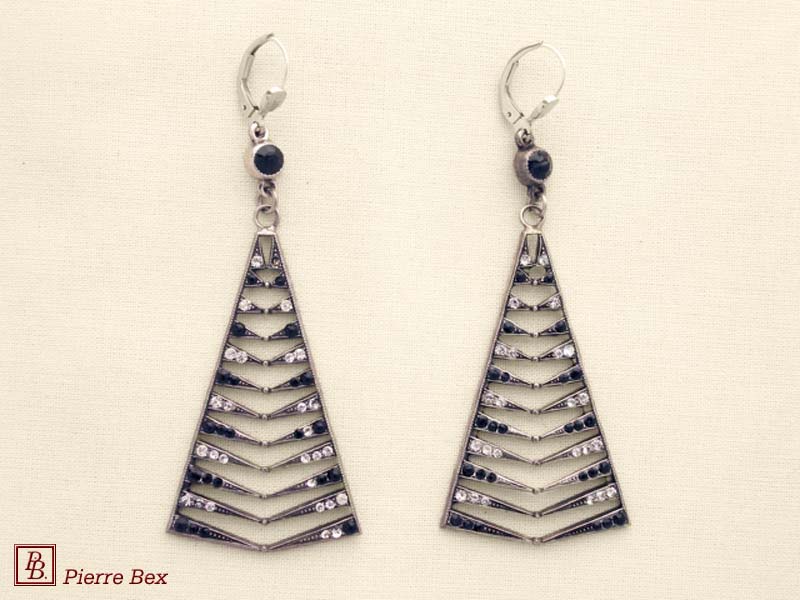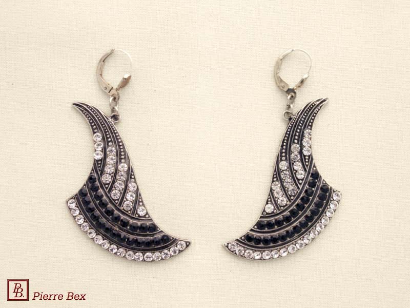 ![]() Art-Deco earrings 46115-11Sold OutMade by Pierre-Bex from silverplated copper and black and white rhinestones, they have a silver wire. The length of these earrings is 8 cm ( 3 inches ). Sold Out |