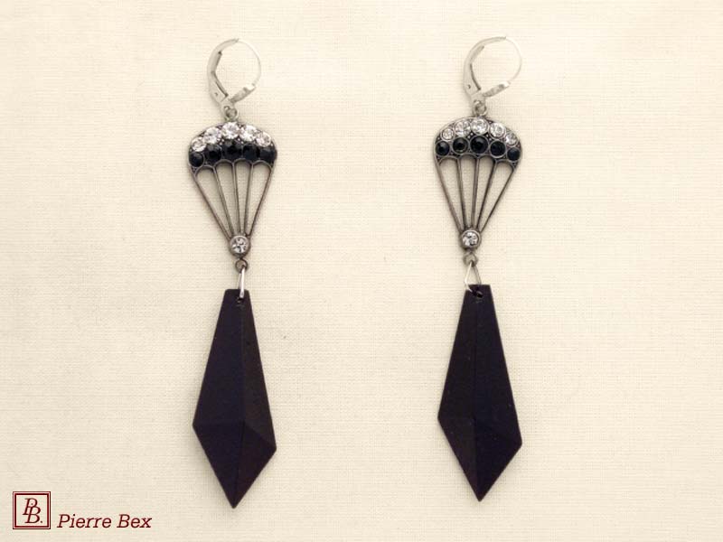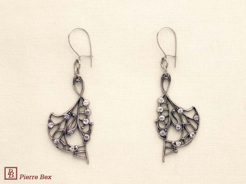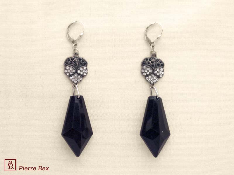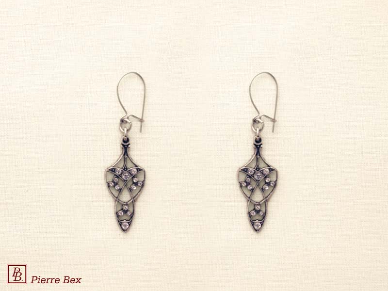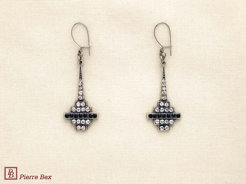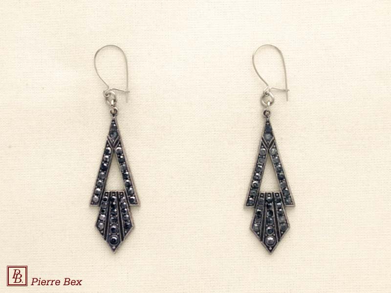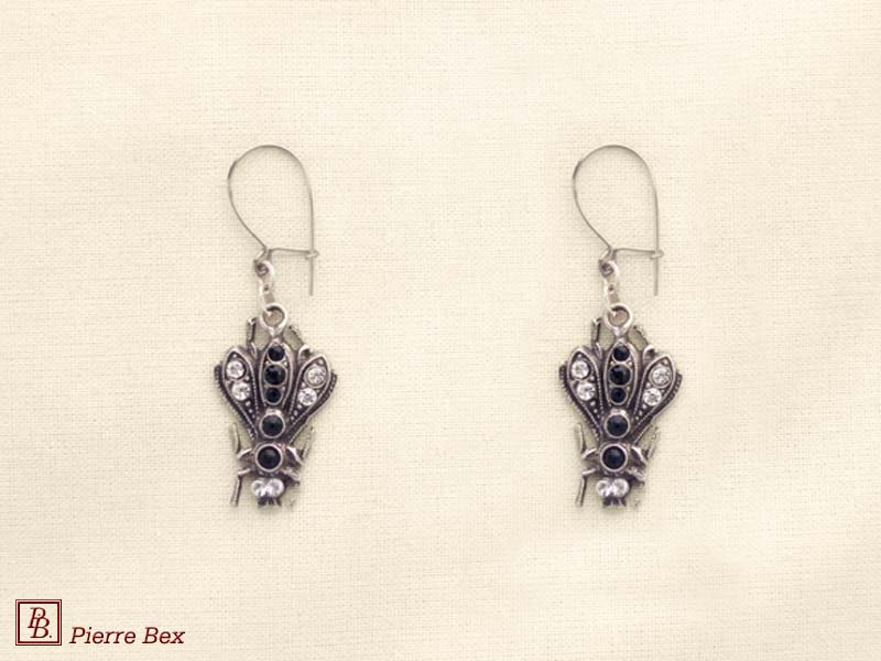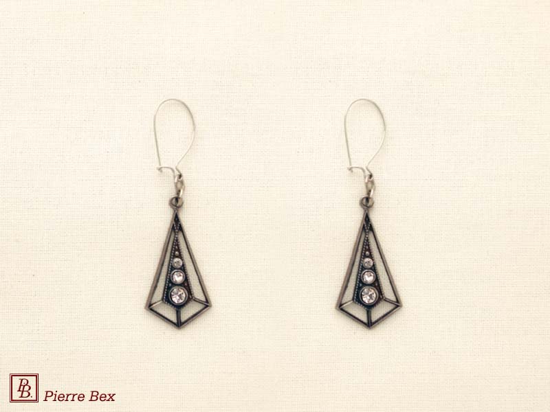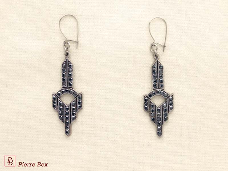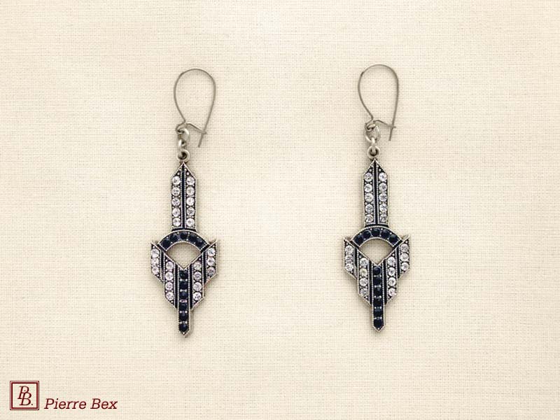 ![]() Art-Deco earrings 46115-11Sold OutMade by Pierre-Bex from silverplated copper and black and white rhinestones, they have a silver wire. The length of these earrings is 8 cm ( 3 inches ). Sold Out |