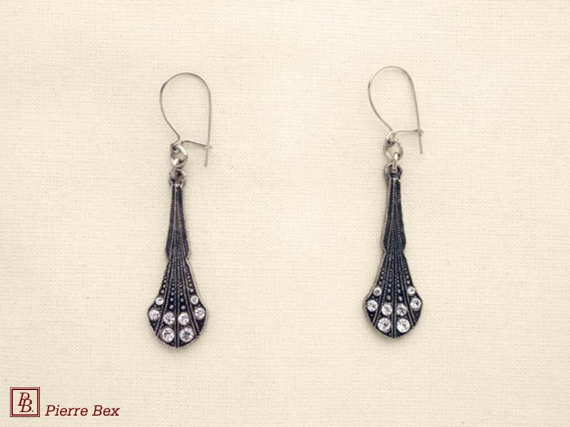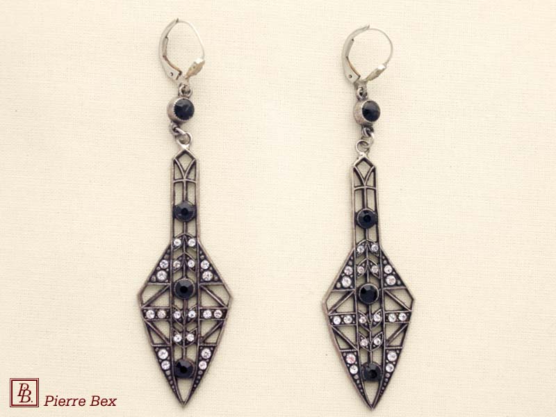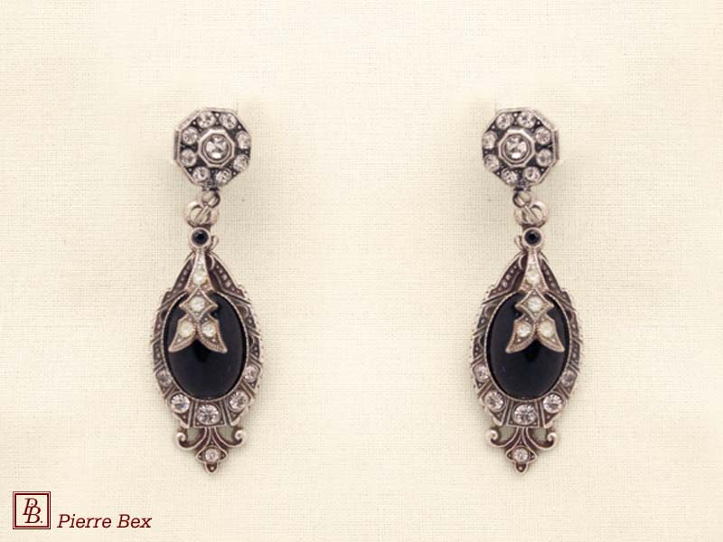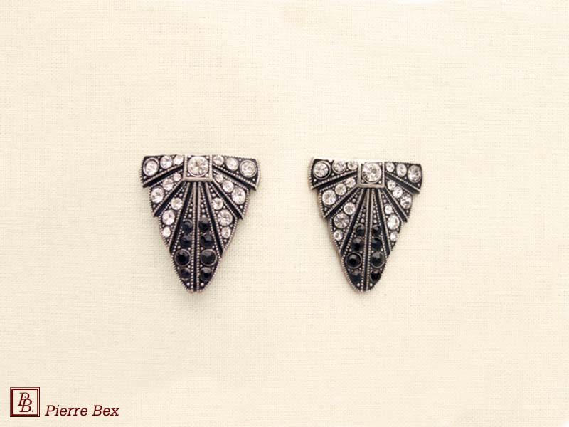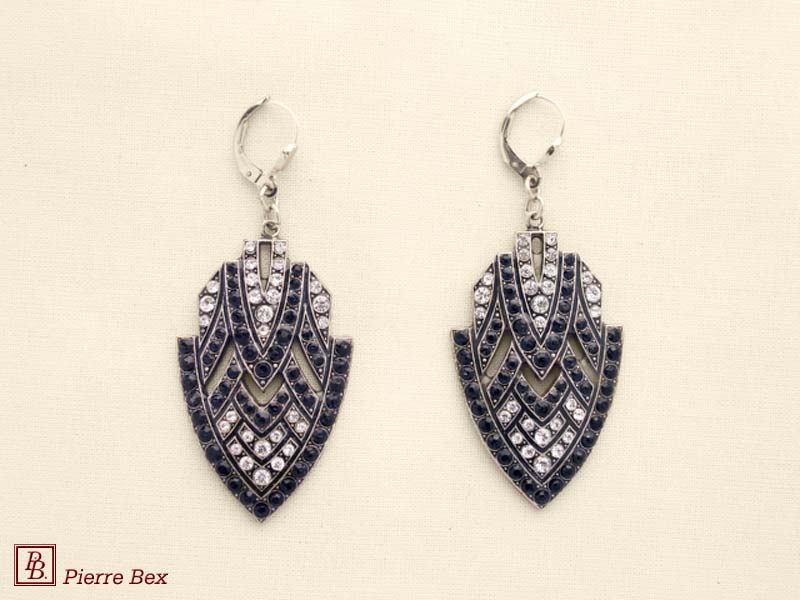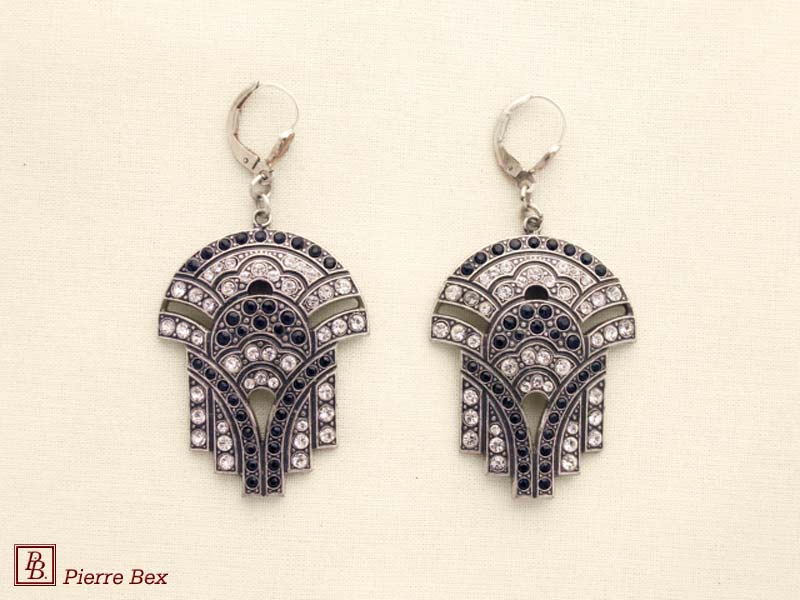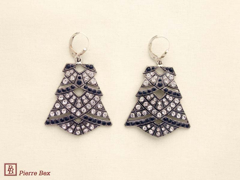 ![]() Art-Deco earrings with rhinestones 45555-12Sold OutMade by Pierre-Bex from silverplated copper and black and white rhinestones, they have a silver wire. The length of these earrings is 8 cm ( 3 inches ). Sold Out |