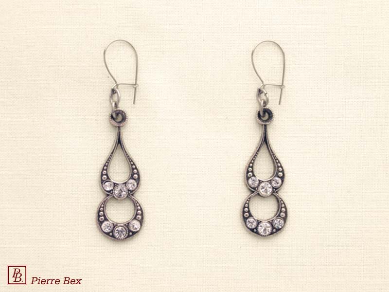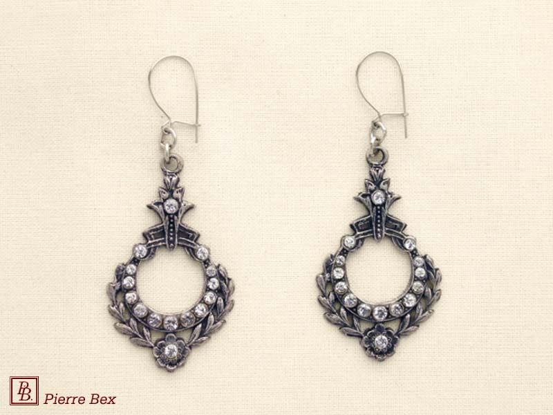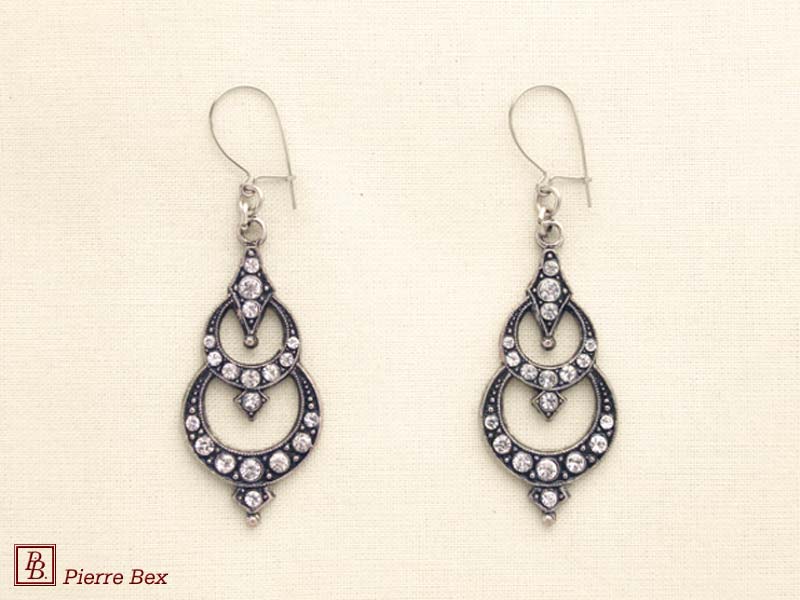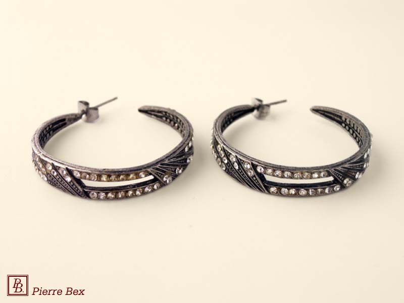 ![]() Art-Deco creoles earrings with rhinestones 45285-01Sold OutMade by Pierre-Bex from silverplated copper with crystal rhinestones, these earrings are 4.5 cm ( 1-½ inch ) width. Sold Out |