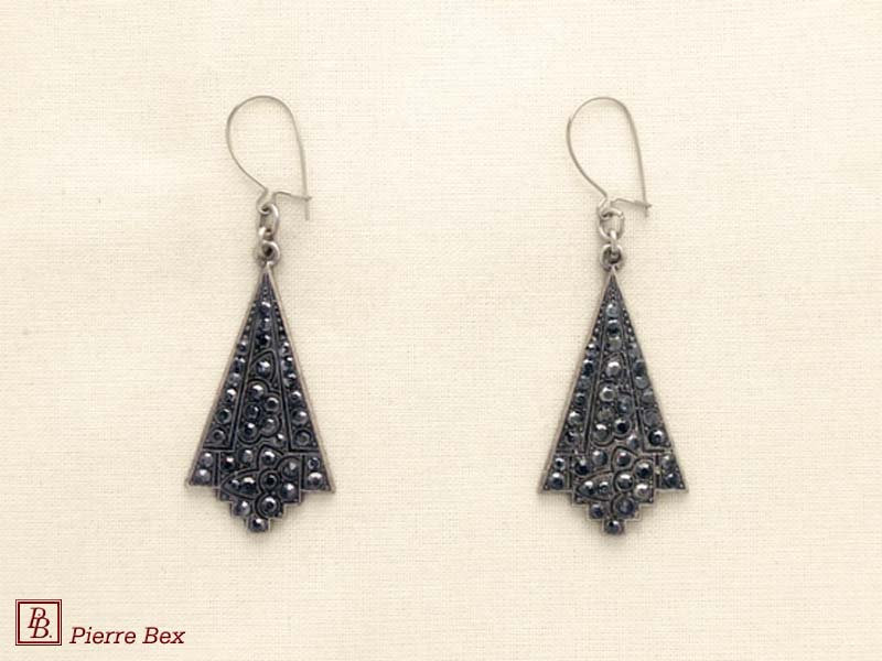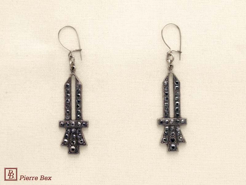 ![]() Art-Deco earrings with rhinestones 45545-04AUSD 30.00![]() Made by Pierre-Bex from silverplated copper and marcasite rhinestones, the length of these earrings is 3 cm ( 1 inch ). USD 30.00 |